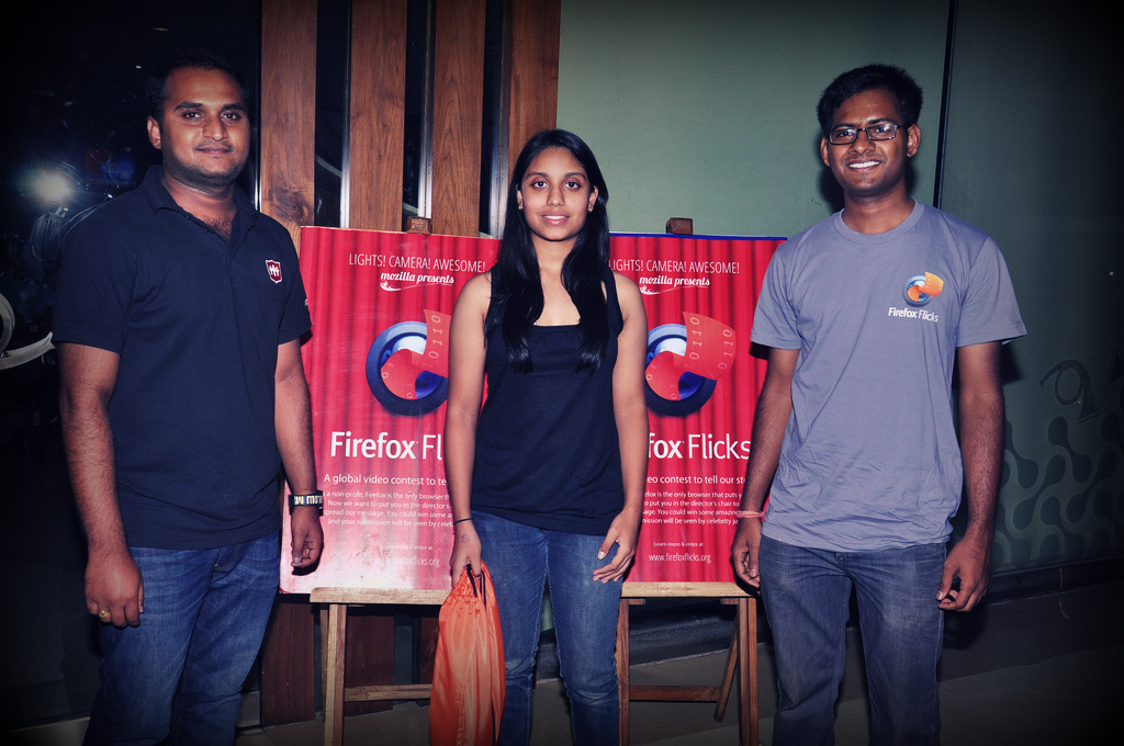 Mozilla Reps and Student Reps at the event were Sai Kiran, Srikar Ananthula, Santosh Kesiraju, Kartheek, Aloke Anand to name a few.We had an amazing time meeting at the event and watching the winning videos. Thanks to all for coming over and making the event a success.Visit our Facebook Gallery for the awesome pictures of the event. Make sure to tag yourself and anyone you know in the photos!